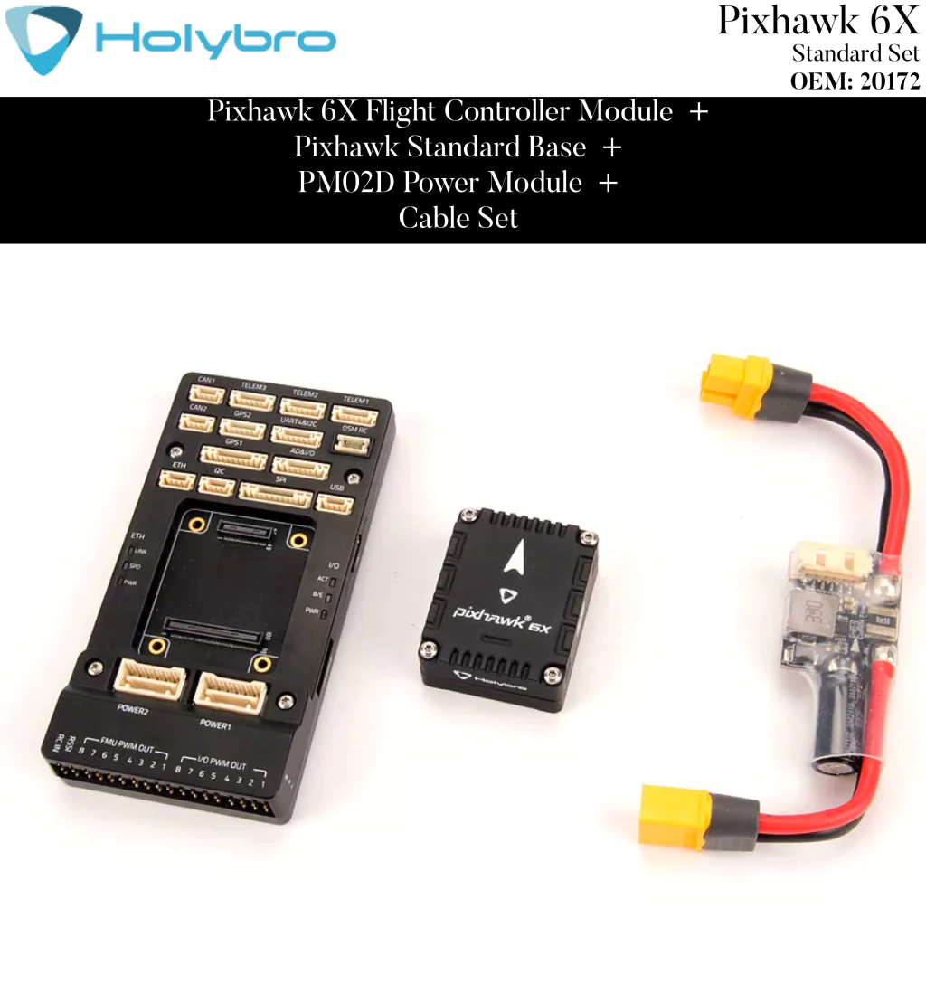 O Pixhawk® 6X é a atualização mais recente da bem-sucedida família de controladores de voo Pixhawk®, baseada no Pixhawk® FMUv6X Open Standard e no Pixhawk® Autopilot Bus Standard.